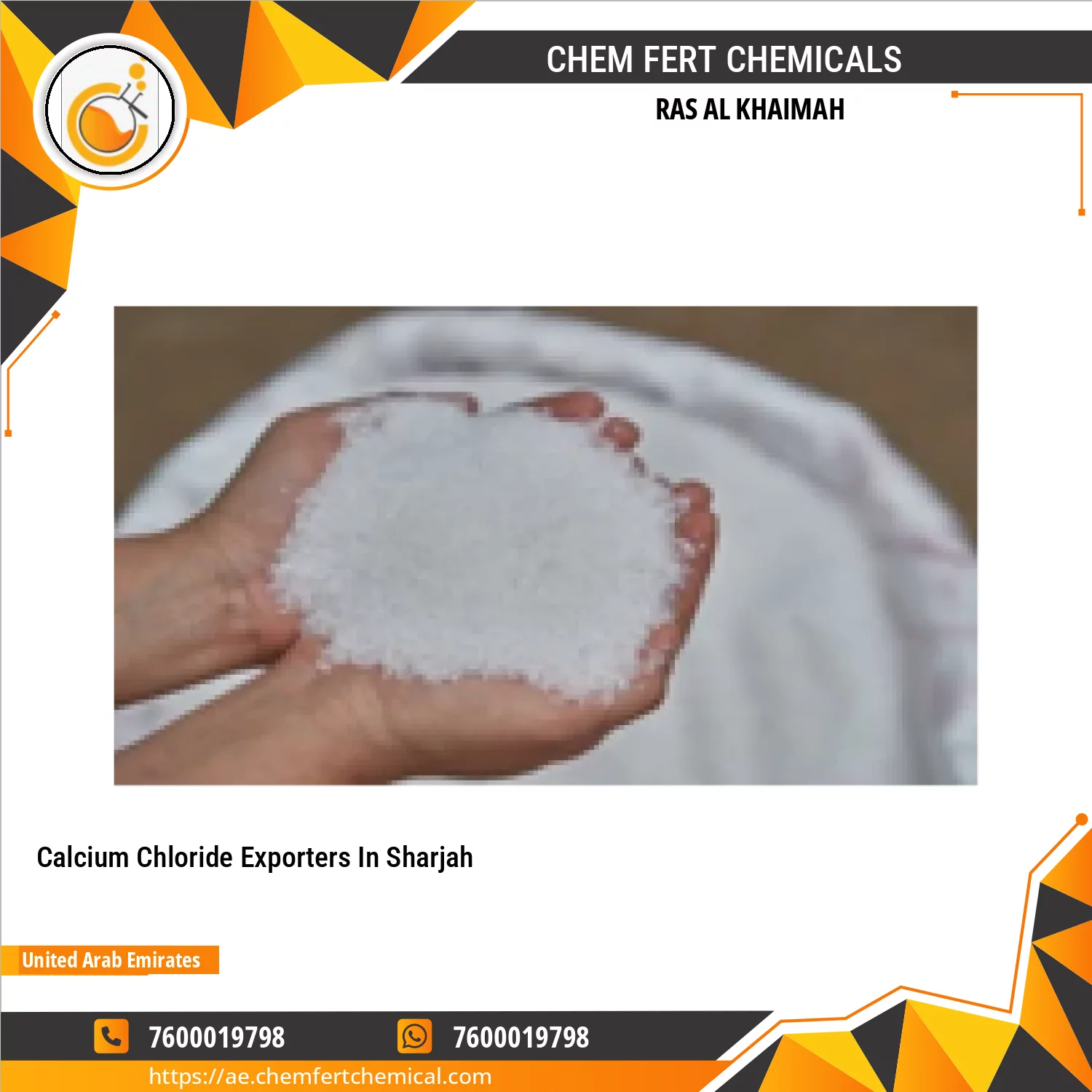 High-Purity Calcium Chloride For Industrial And Commercial UseWe Supply Calcium Chloride In Various Grades And Concentrations To Various Industries Across The UAE. This Compound Boasts Excellent Drying And Freezing Point Lowering Properties And Is Used In Processes Requiring Rapid Moisture Removal, Deicing, Brine Preparation, And Dust Suppression.Offered For UAE MarketsWe Provide The Following Forms:Calcium Chloride Anhydrous (94–97%) – White Flakes, Granular, Or PowderCa Continue